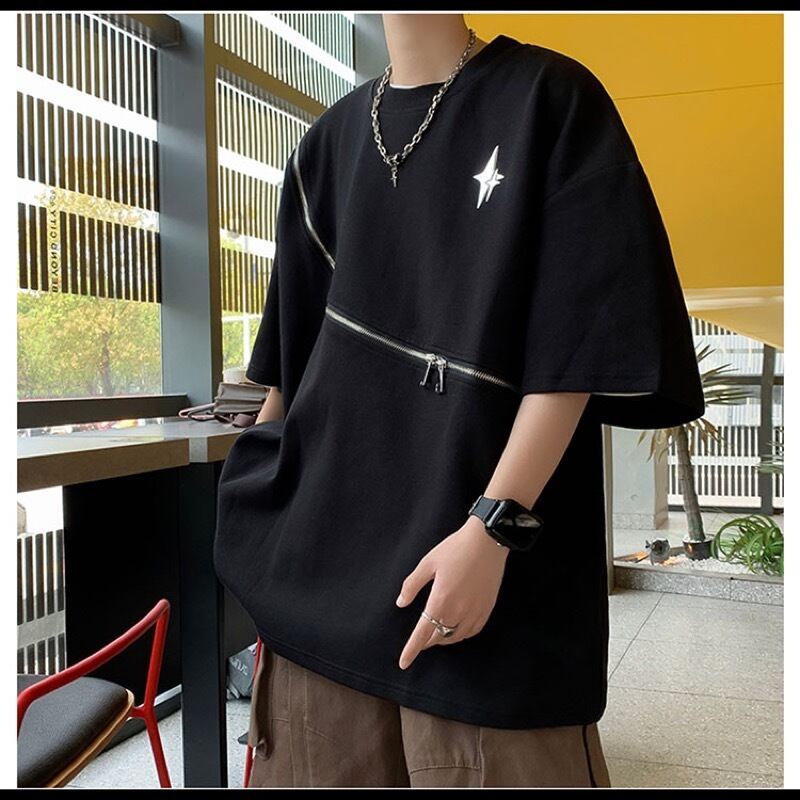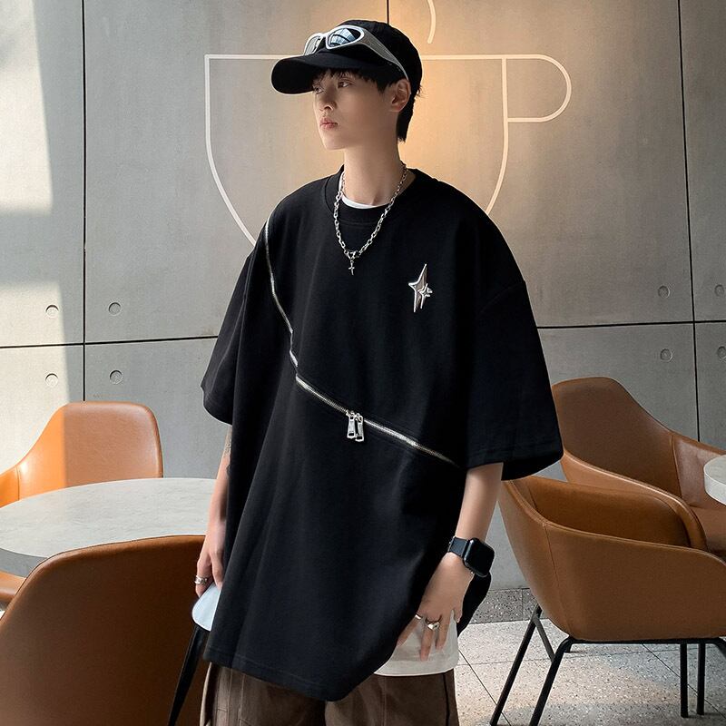 トップス カットソー Tシャツ 半袖 ジッパー クルーネック ラウンドネック メンズ
